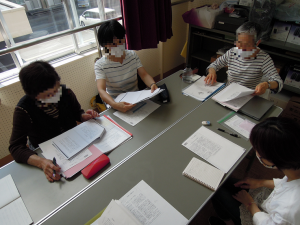 音声訳の技術向上のため、毎月の定例会でテーマを決め、研修を行っています。